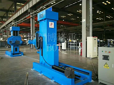 ●雙立柱焊接變位機主要由回轉機構、支承座、翻轉機構、電控系統(tǒng)組成。