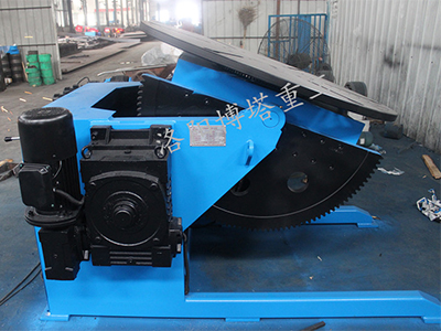 變位機采用座式結(jié)構(gòu),主要由機架、回轉(zhuǎn)機構(gòu)、翻轉(zhuǎn)機構(gòu)、導(dǎo)電裝置、電氣控制等組成。工作臺回轉(zhuǎn)采用交流變頻無級調(diào)速的方式,轉(zhuǎn)速均勻,無爬行,保證滿足設(shè)計焊接速度的要求。變位機留有與我公司品牌操作機聯(lián)動的接口。