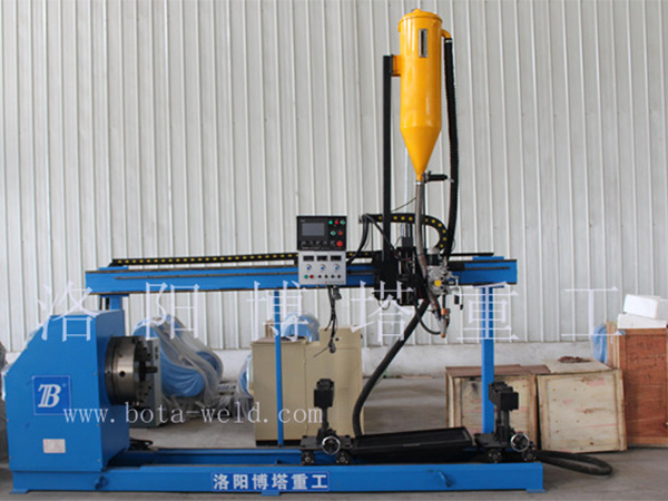 焊接時主傳動系統(tǒng)將運動傳遞到主軸,主軸驅(qū)動軋輥旋轉(zhuǎn),機頭沿軋輥軸向平移,從而在工作表面形成阿基米德螺旋線堆焊道,因焊道有定的寬度,每條焊道間有定的搭接量,在工作面形成具有足夠的硬性、高溫耐磨性、和熱疲勞性的堆焊層。
