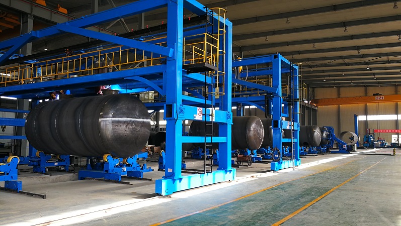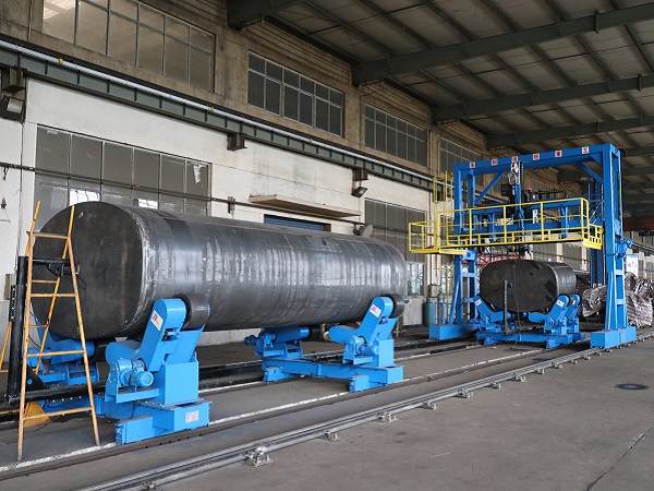 環(huán)縫焊模式:焊接機(jī)頭在工件軸線方向移動(dòng),以移動(dòng)至待焊外環(huán)縫位置,滾輪架帶動(dòng)工件旋轉(zhuǎn)可對(duì)外環(huán)縫進(jìn)行循環(huán)焊接。此套設(shè)備配有兩套滾輪架以適應(yīng)兩個(gè)工位的焊接需求。